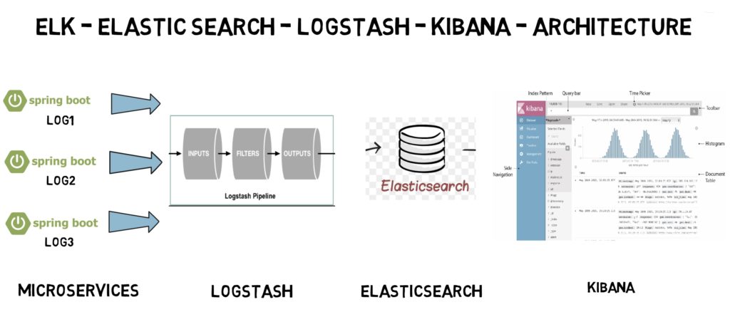 ELK分别是Elasticsearch、Logstash、Kibana三个工具首字母,而这三个工具分别为日志收集提供不同的功能: