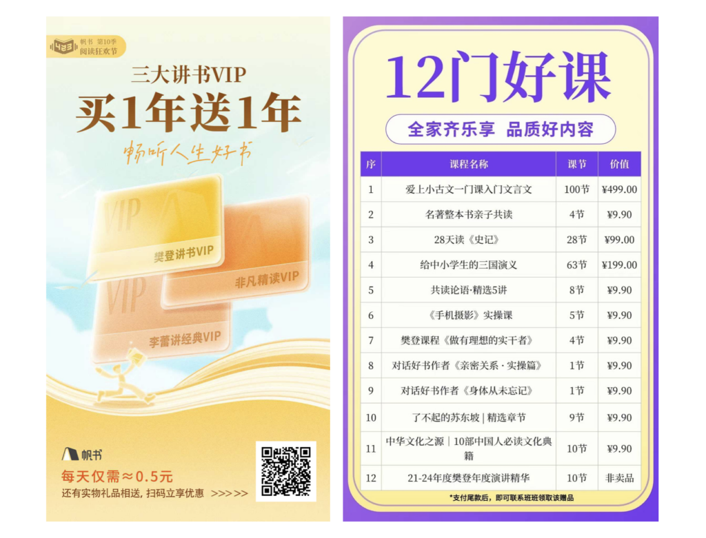 📌 4.23读书节帆书会员大促,388元获两年会期,还送12门好课,超值~👇