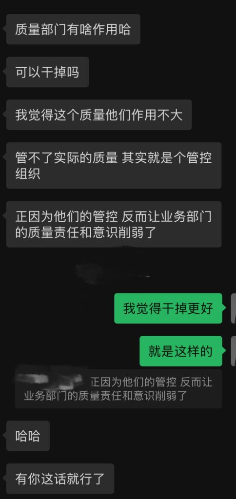 “质量部门有啥用哈?可以干掉吗?”